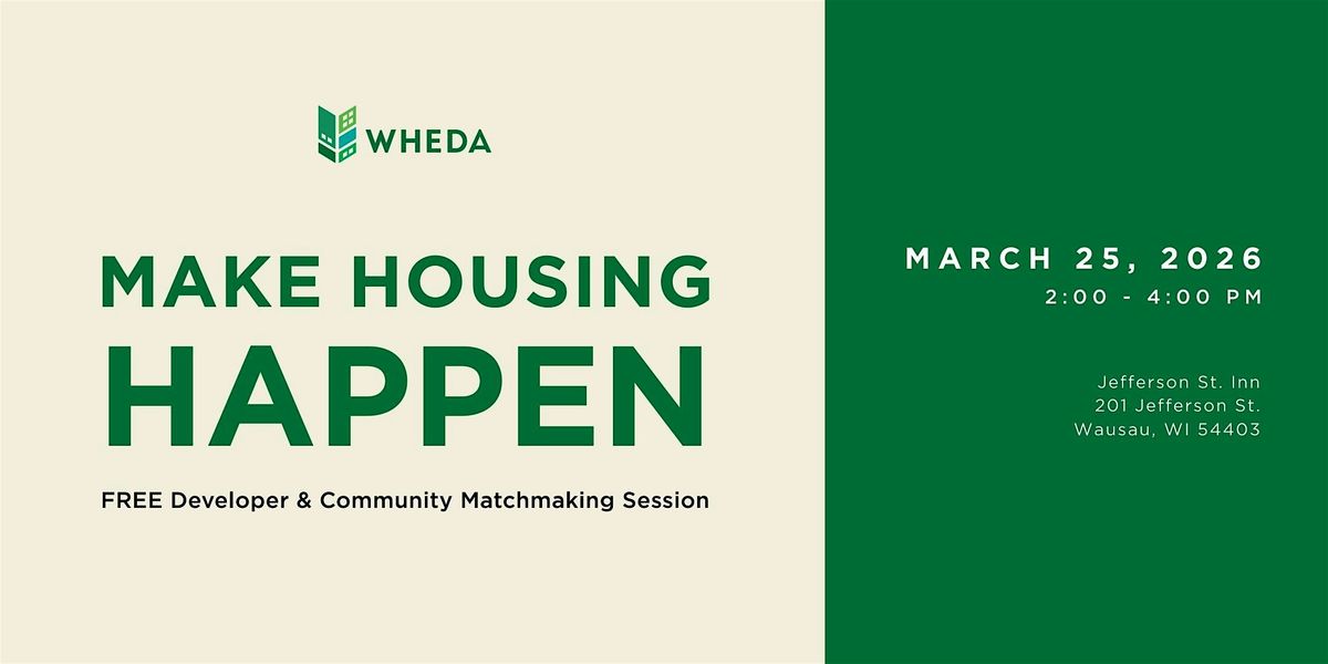 The event will highlight WHEDA’s housing resources, along with other innovative financing tools that can help move affordable housing development forward in Wisconsin communities. Each participating municipality and tribal nation will host a table to highlight priority development sites, local housing goals; and available tools, giving developers an opportunity to learn directly from communities ready to move projects forward.