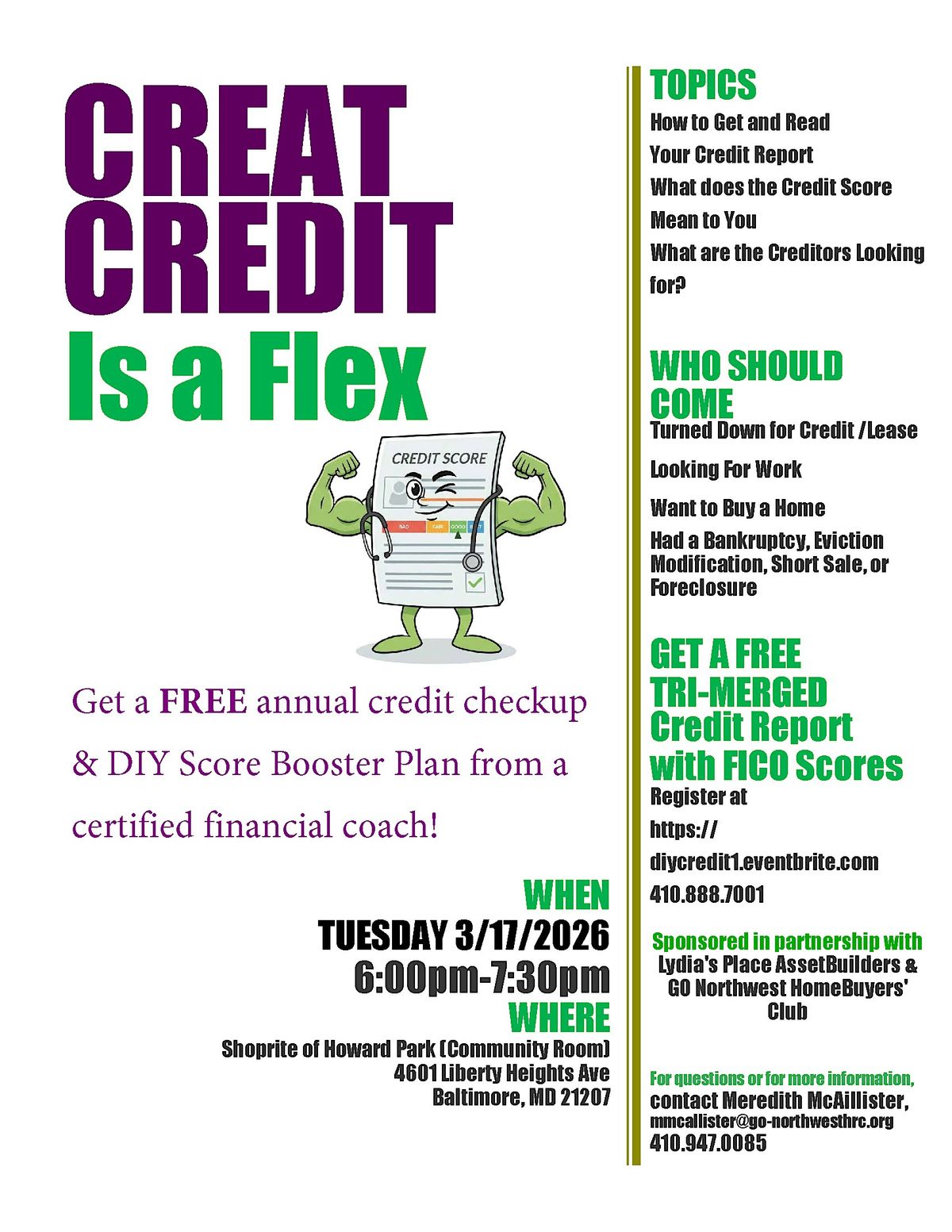 Every participant will receive a free tri-merged credit report with FICO scores to use as we highlight 5 tips that can boost your credit score in the next 60 days. Also every attendee is eligible for free on-going credit coaching through December 2026.