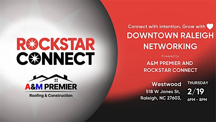 Join A&M Premier Roofing and Construction and Rockstar Connect for an evening of meaningful connection on Thursday, February 19, 2026, from 6:00 PM to 8:00 PM at Westwood Raleigh.