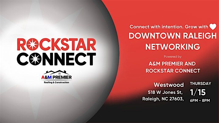 Join A&M Premier Roofing and Construction and Rockstar Connect for an evening of meaningful connection on Thursday, January 15, 2026, from 6:00 PM to 8:00 PM at Westwood Raleigh.