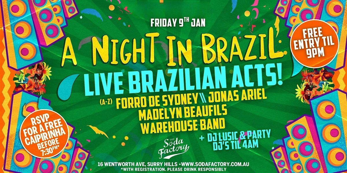 Join us at The Soda Factory to see LIVE a stacked lineup of Brazilian musicians for A Night In Brazil!
