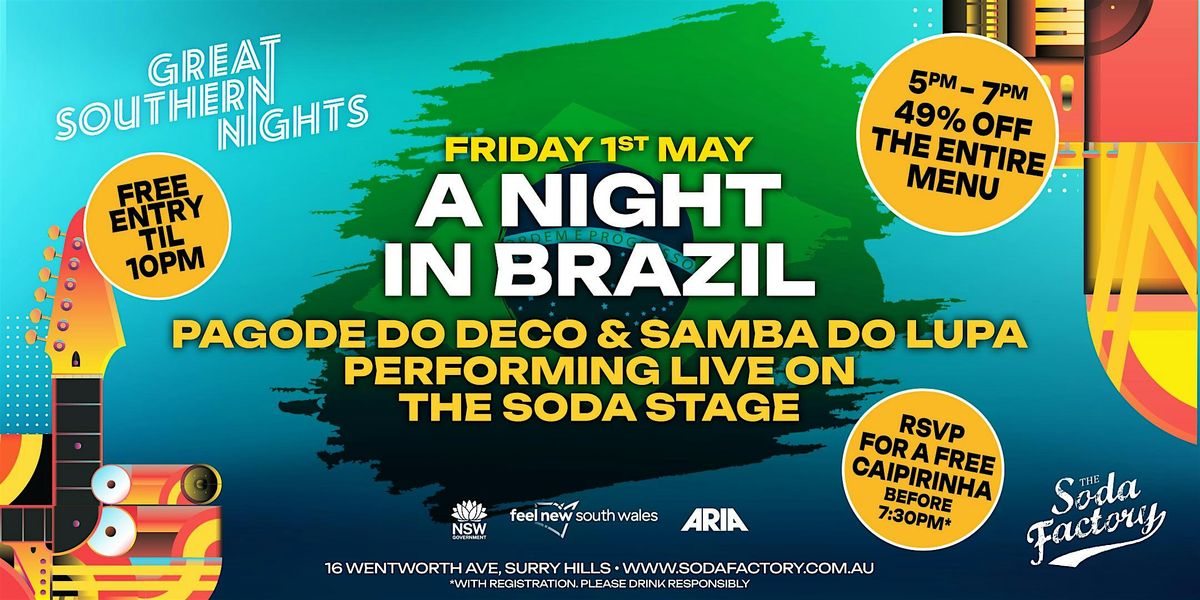 Join us at The Soda Factory to see LIVE a stacked lineup of Brazilian musicians for A Night In Brazil!