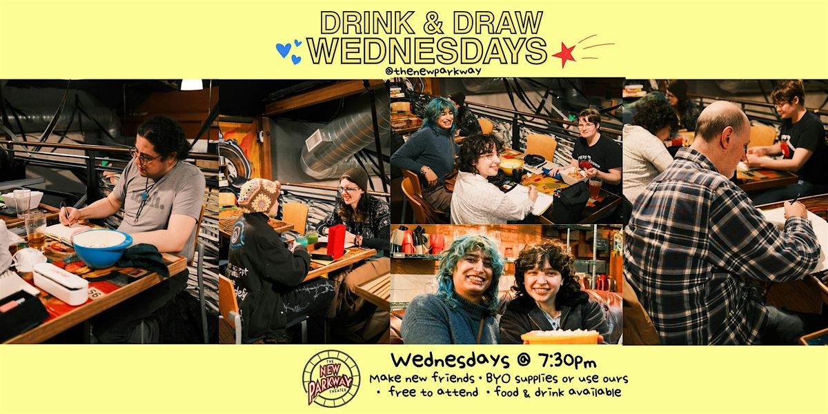 Drink & Draw at The New Parkway is a relaxed, come-as-you-are creative night centered around drawing, sipping drinks, and spending time together.