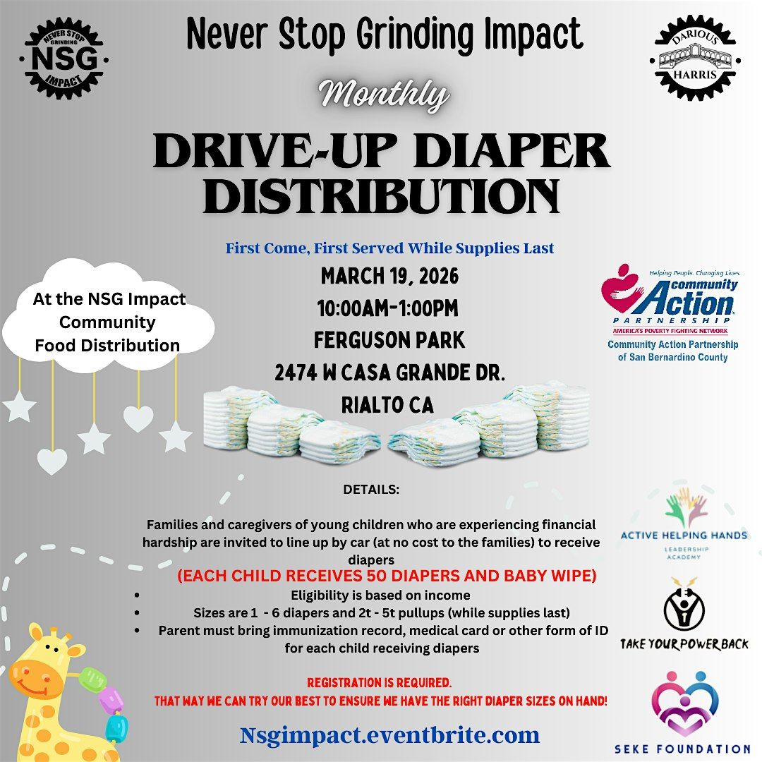 Never Stop Grinding Impact, in partnership with Community Action Partnership of San Bernardino County, is organizing a monthly diaper distribution event. This event will take place alongside our monthly food distribution EVERY 3rd THURSDAY OF EACH MONTH.