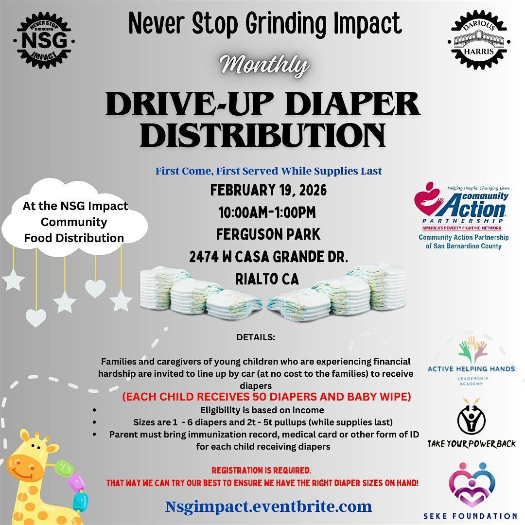 Never Stop Grinding Impact, in partnership with Community Action Partnership of San Bernardino County, is organizing a monthly diaper distribution event. This event will take place alongside our monthly food distribution EVERY 3rd THURSDAY OF EACH MONTH.