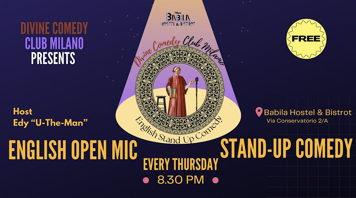 Welcome to Divine Comedy Club Milano's English Stand-up Comedy Open Mic at Babila Hostel & Bistrot Every Thursday at 8.30 pm.