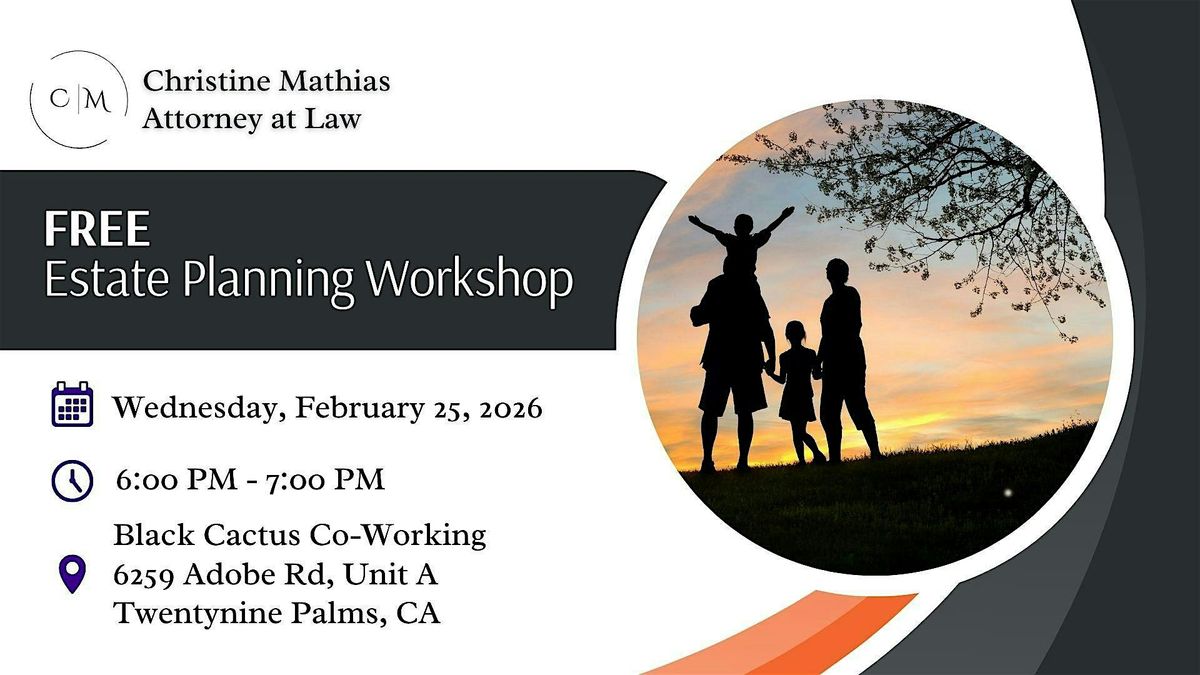 Most people know they need a plan, but the "how" and "where to start" can feel overwhelming. Join us for a special educational event at Black Cactus Co-Working in Twentynine Palms. This workshop is designed to strip away the legal jargon and provide you with a clear, actionable roadmap to protect your assets and your loved ones.