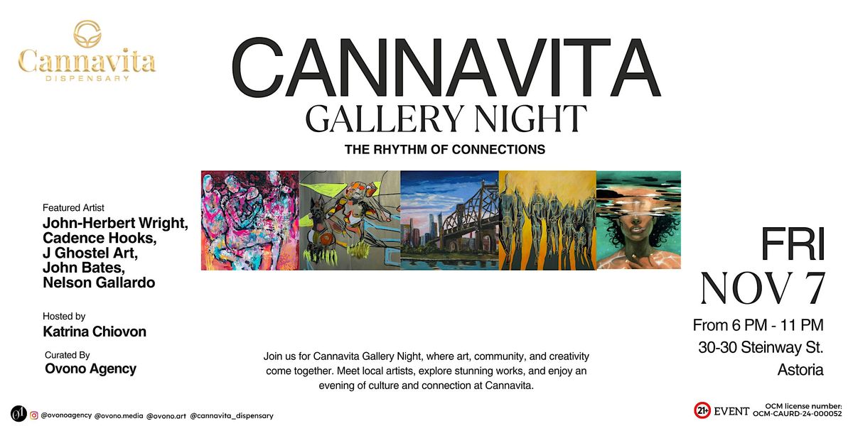 Enjoy a night surrounded by culture, conversation, and community in this one-of-a-kind gallery experience at Cannavita Dispensary, 30-30 Steinway St, Astoria, NY.