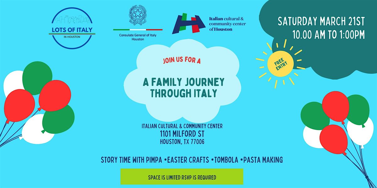 A Family Journey Through Italy is a special community event designed for children and families to experience Italian traditions through storytelling, crafts, games, and food.