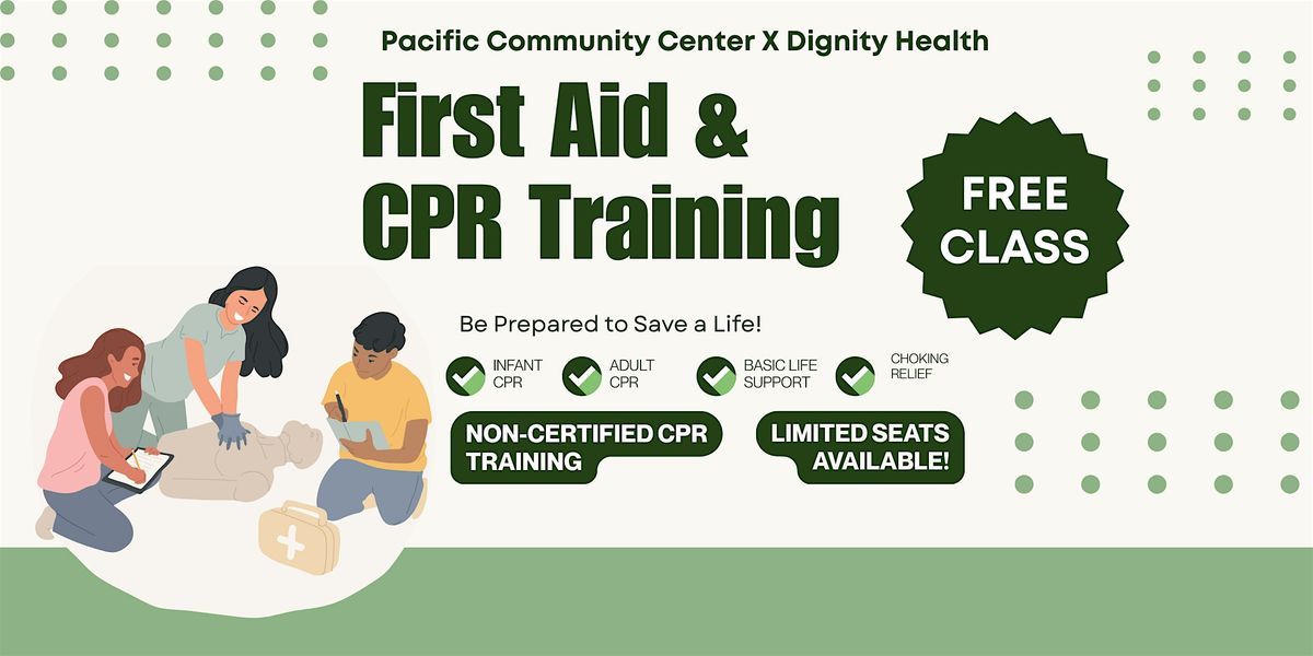 Learn how to help save a life in just one hour! ❤️ Pacific Community Center, in partnership with Dignity Health, is hosting a free, non-certified CPR class for community members interested in learning basic lifesaving skills.