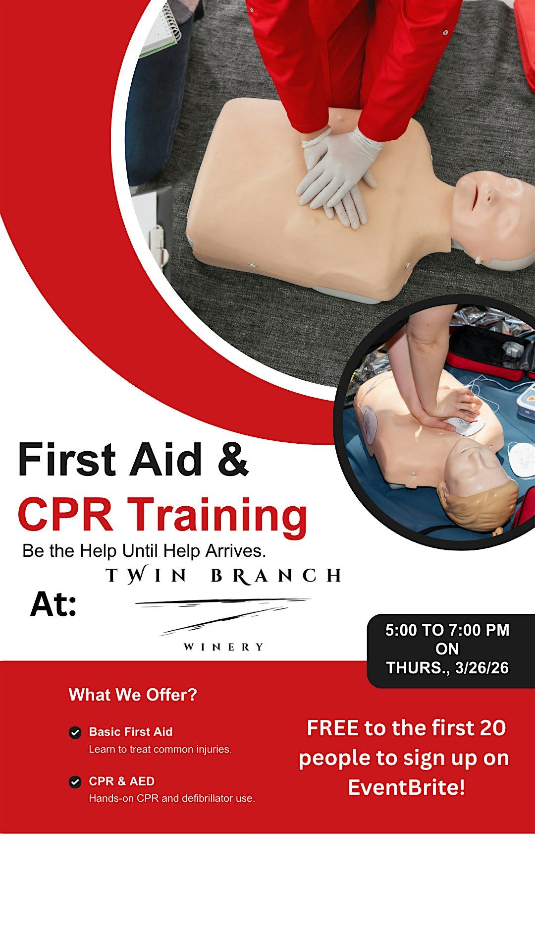 Free CPR and First Aid training at the winery. Only 20 spots open for the event!