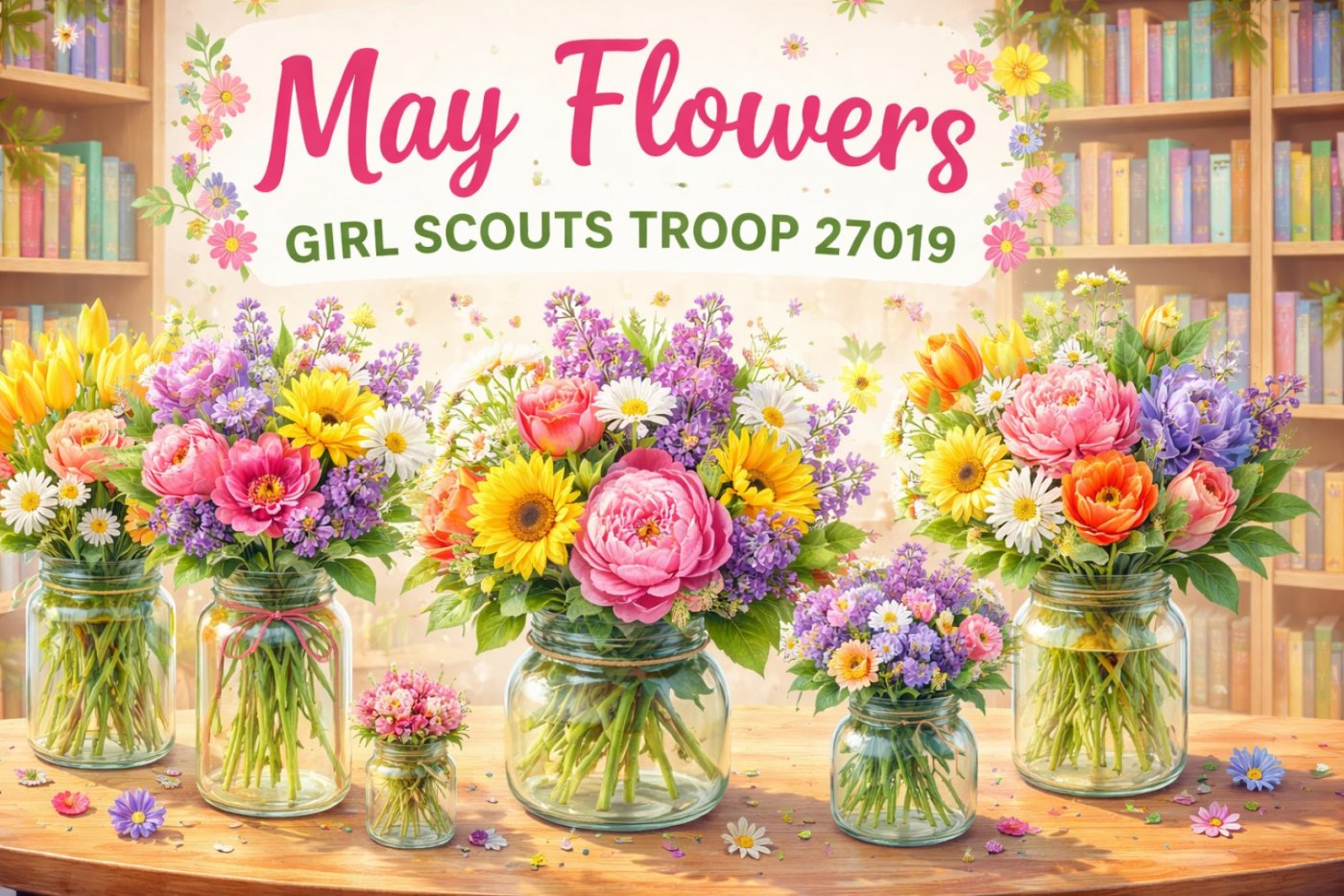 During this special event, the Girl Scouts will design and assemble at least 150 handcrafted flower bouquets, which will be freely given to neighbors, supporters, library visitors, and friends as a gesture of appreciation and community connection.