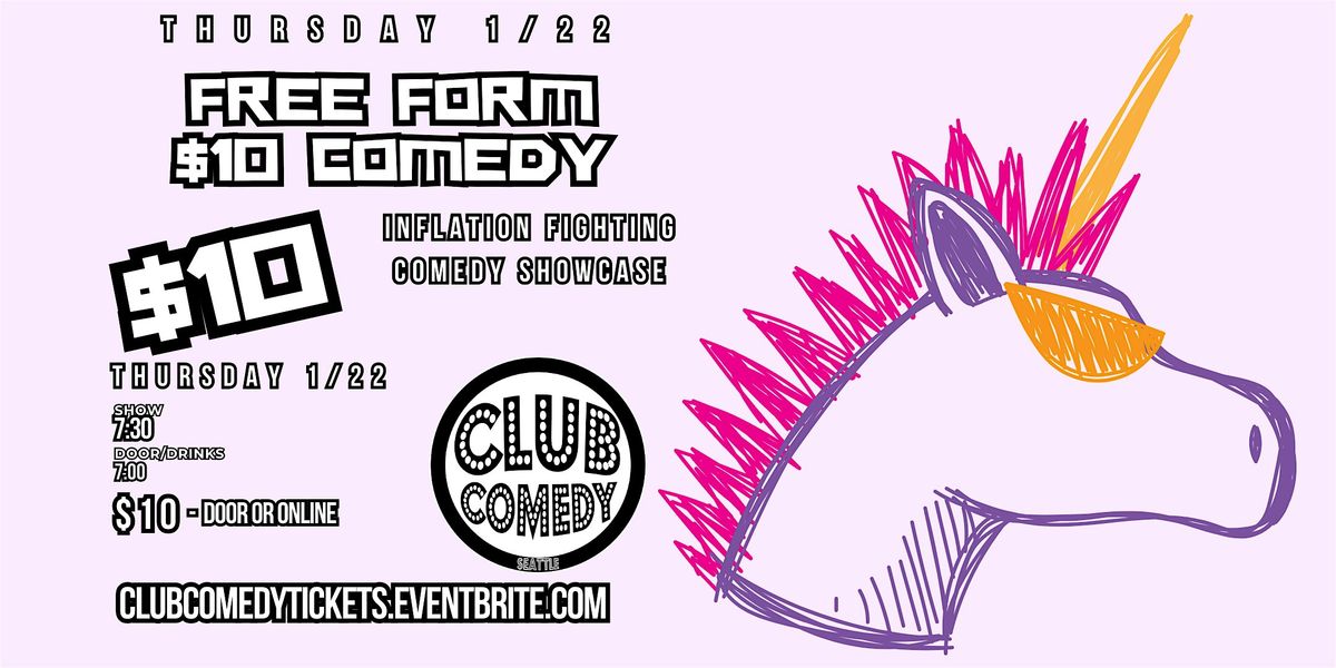 We're doing our part to fight inflation by offering up our cheapest, fastest, funniest stand-up comedy show ever! The show starts at 7:30 and is jam packed with comedians for just $10. You seriously can't find this kind of comedy value anywhere else in 2026. Come get all the Laughs, Fun, and Drinks at Club Comedy Seattle all for just $10!