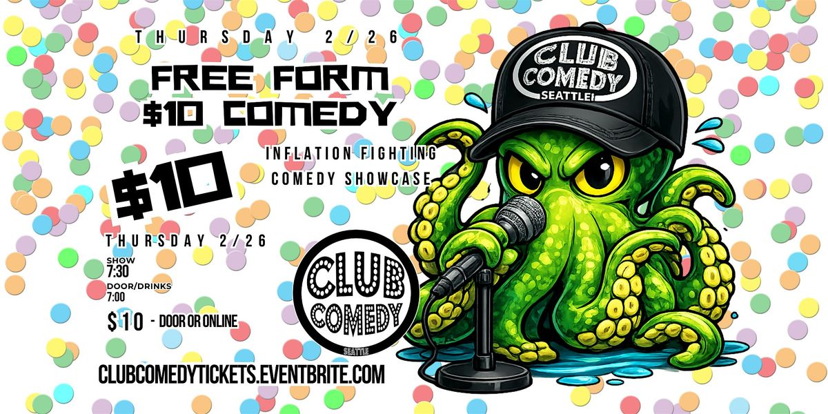 We're doing our part to fight inflation by offering up our cheapest, fastest, funniest stand-up comedy show ever! The show starts at 7:30 and is jam packed with comedians for just $10. You seriously can't find this kind of comedy value anywhere else in 2026. Come get all the Laughs, Fun, and Drinks at Club Comedy Seattle all for just $10!