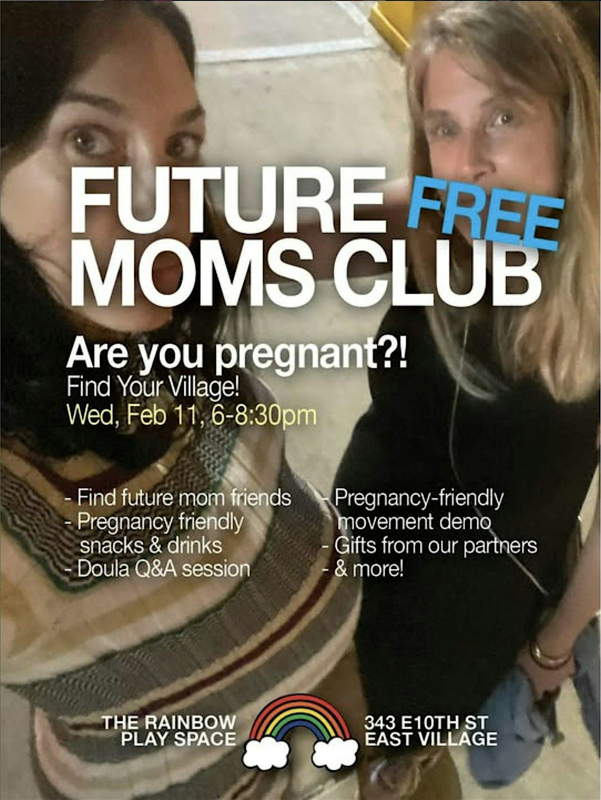 Future moms and new moms welcome to this free event. Come eat pregnancy-friendly snacks and have NA drinks with us while we introduce you to the women that could become your village. Mom friends are our most valuable resource, so we are throwing a fun, comfortable gathering to bring women together who will lean on each other for advice, camaraderie, rant sessions, and everything in-between during early motherhood and beyond.