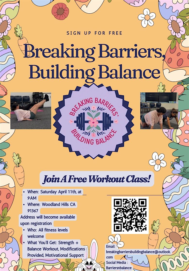 Our Breaking Barriers, Building Balance session combines strength, cardio, and balance exercises with modifications provided for every participant. Whether you’re new to fitness, getting back on track, or looking to push your limits, this class is built to keep you motivated, inspired, and accountable in a fun and supportive environment.