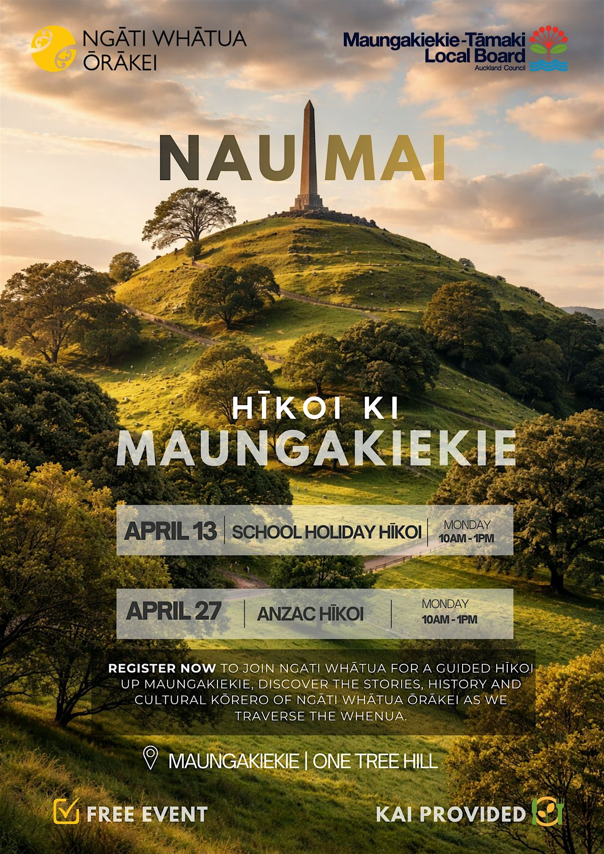 This is a special opportunity to experience our iconic maunga through a Māori lens — learning its stories, its ancestry, and its deep cultural and historical significance through kōrero, waiata and kēmu.