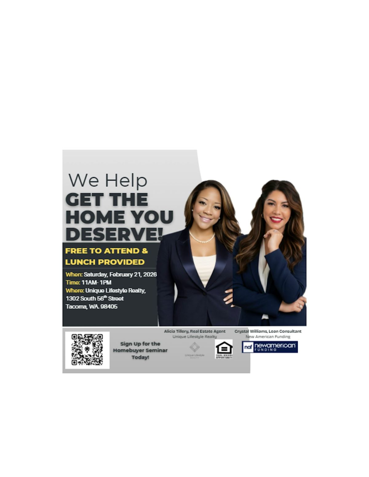 Unlock the knowledge, confidence, and strategy you need to purchase a home in 2026. Whether you're a first‑time buyer, returning buyer, or exploring creative options like multigenerational living or investment properties, this seminar gives you the tools to move forward with clarity.