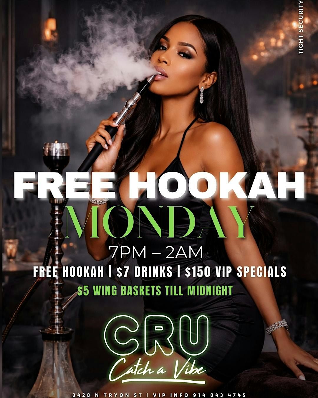 Kick off your week the right way at Free Hookah Mondays — where relaxed energy meets upscale nightlife. Pull up to CRU for smooth vibes, beautiful people, and a laid-back but lively atmosphere designed to set the tone for your week.