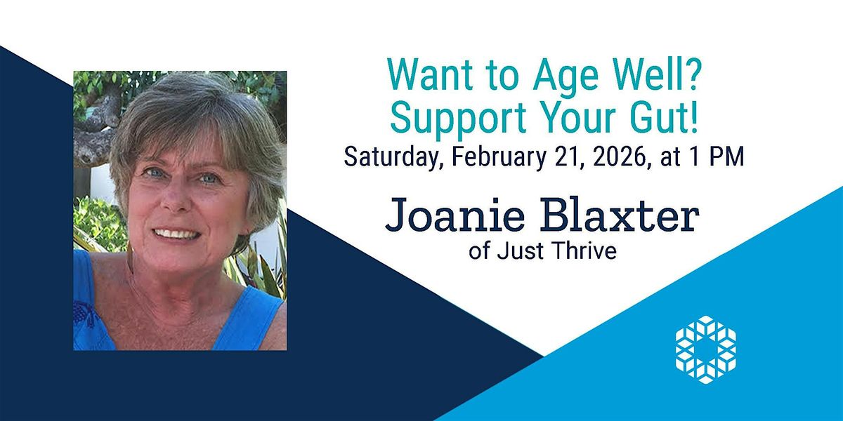 You’re Invited! Want to Age Well? Support Your Gut! On Saturday, February 21, 2026, at 1 PM with Joanie Blaxter. Join us to learn: