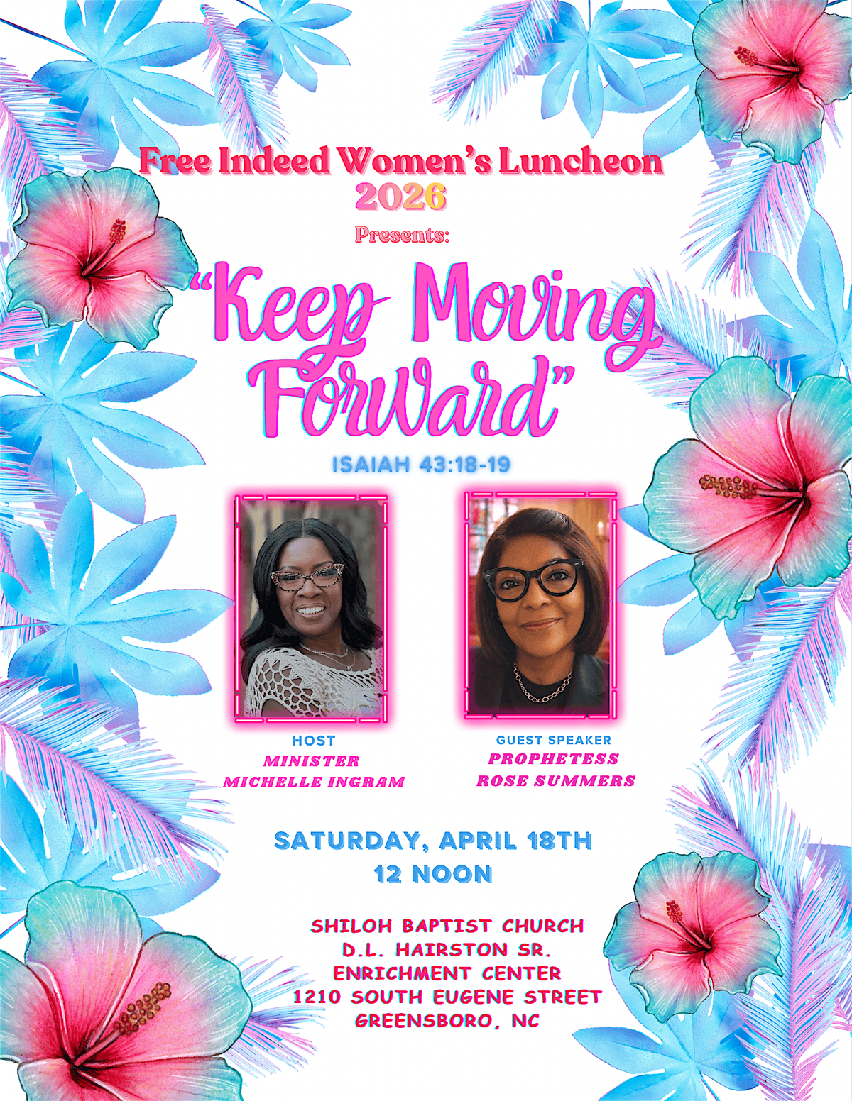 Join us for "Free Indeed Women's Luncheon 2026" Hosted by Michelle Ingram Ministries featuring a dynamic word from Prophetess Rose Summers. This event is a moment of renewal, empowerment and fellowship. Come and be refreshed and restored as God calls us to "Keep Moving forward"