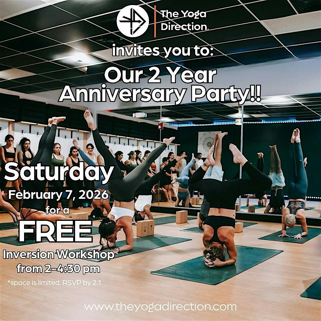Join Us for a day of connection & fun at our FREE Inversion Workshop as we celebrate two years of intention, two years of community, two years of shared practice and memorable moments.