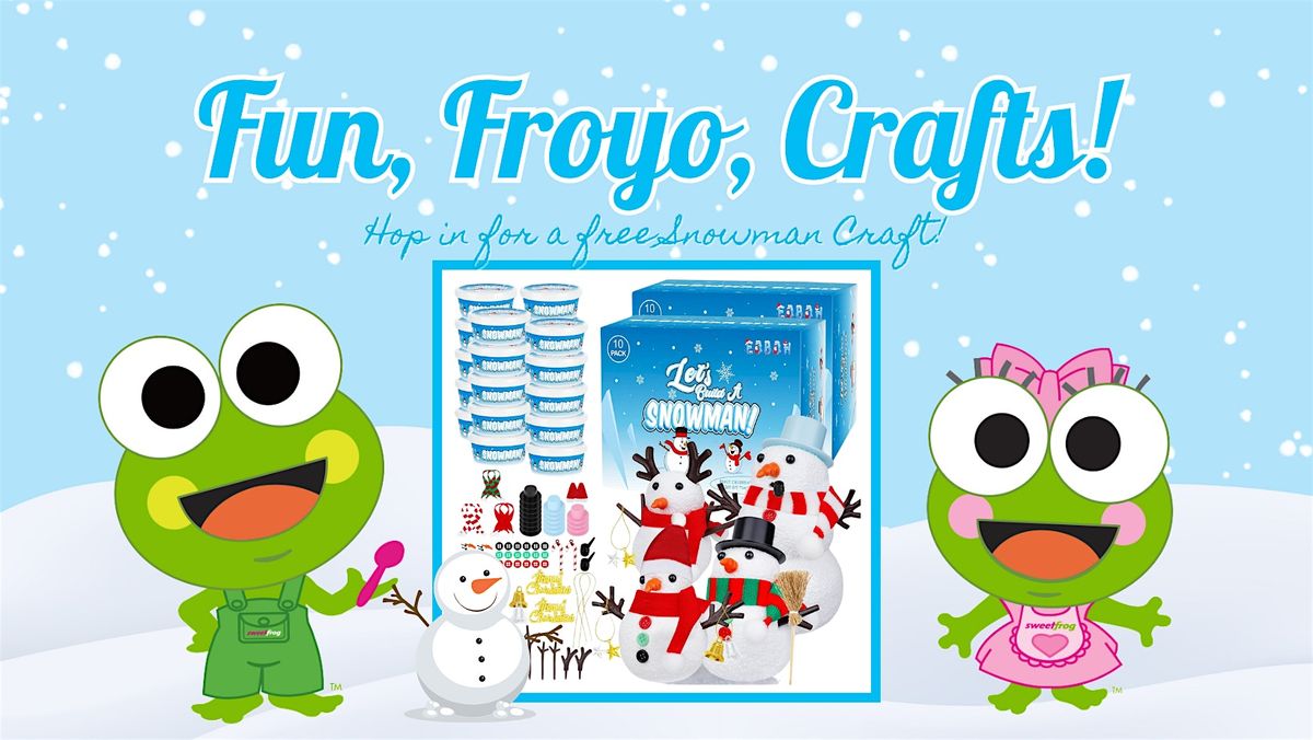 Stop in anytime 12pm-9pm with your little froggers to pick up a FREE Make-A-Snowman craft kit (while supplies last).