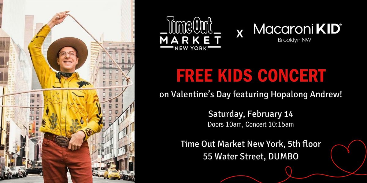 Families are invited to start your Valentine's Day with Brooklyn's hardest-working cowboy musician Hopalong Andrew and spread love on the 5th floor!