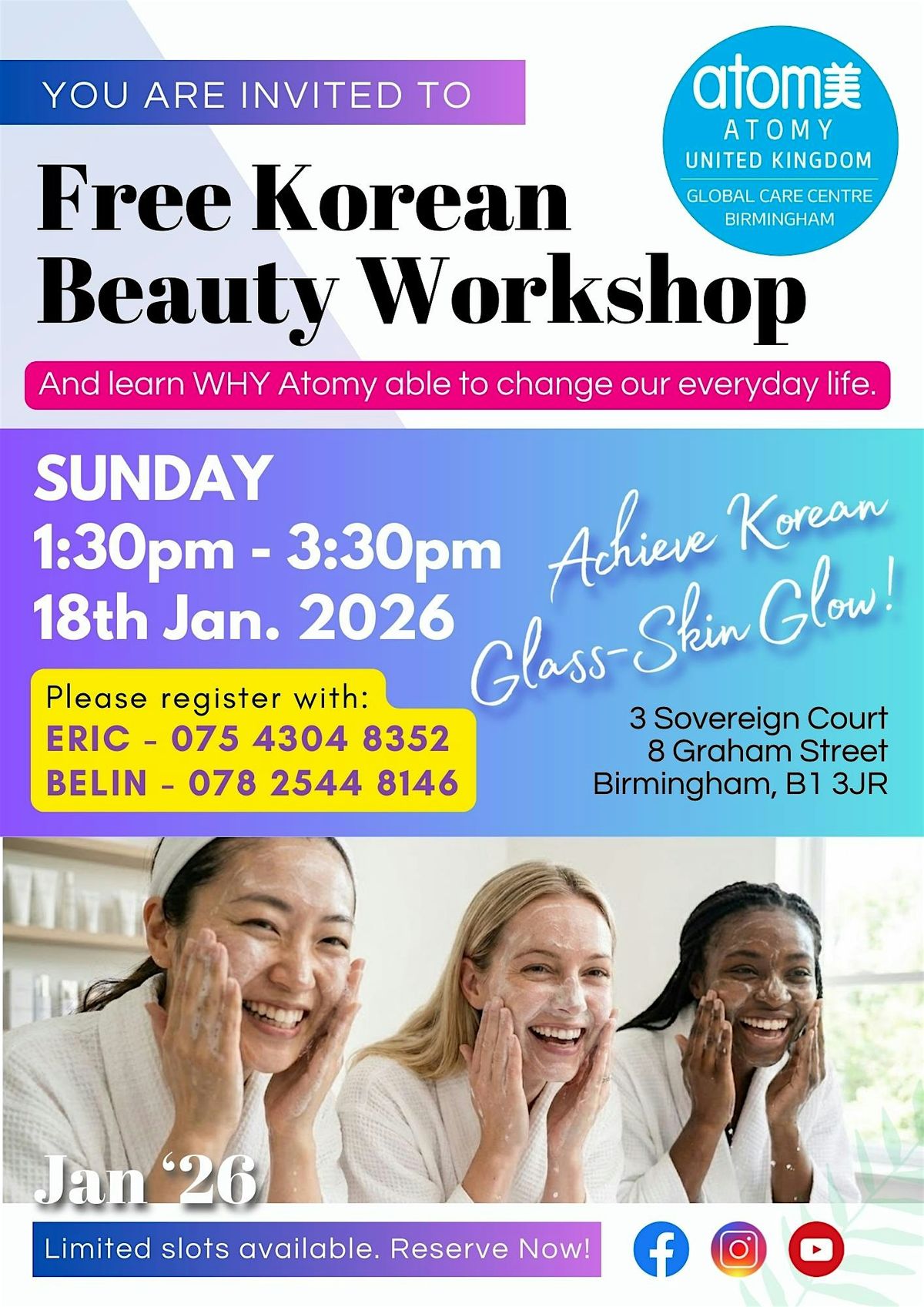 This relaxed, interactive session is perfect for skincare beginners, beauty lovers, and anyone curious about Korean skincare. Learn simple, practical routines you can apply to your daily life... no pressure, just real experience and education.