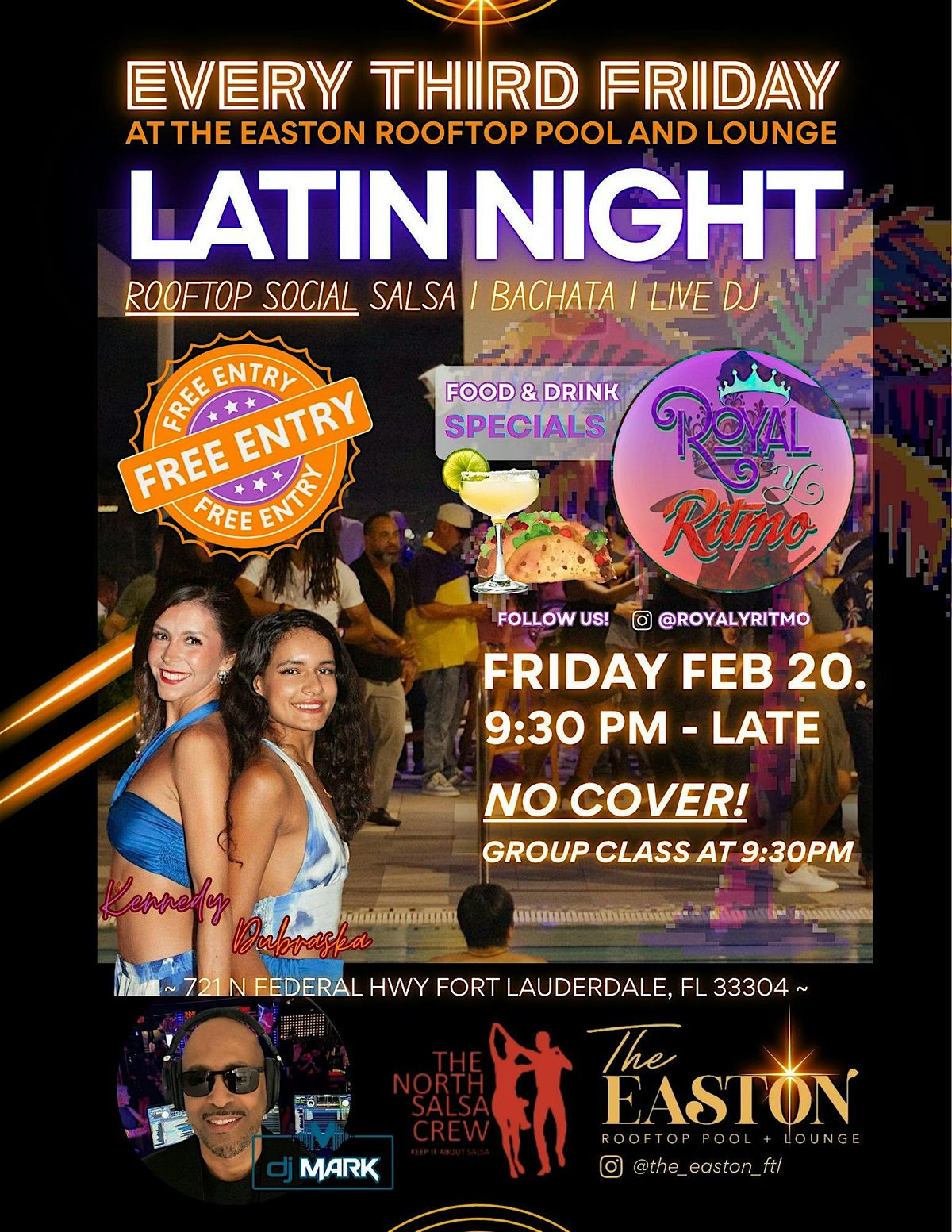 9:30 PM-LATE FREE LATIN NIGHT SALSA CLASS & DJ The Easton Rooftop Latin Night at the Easton is back!!