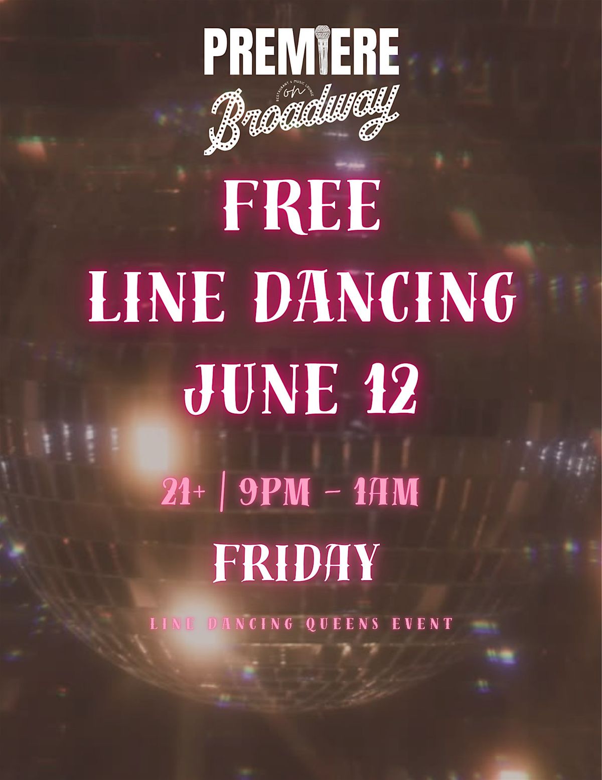 Free line dance lessons 9PM-10PM, then social dancing (line/swing) 10PM-1AM! Come dance with The Line Dancing Queens!! May 2 & June 12.