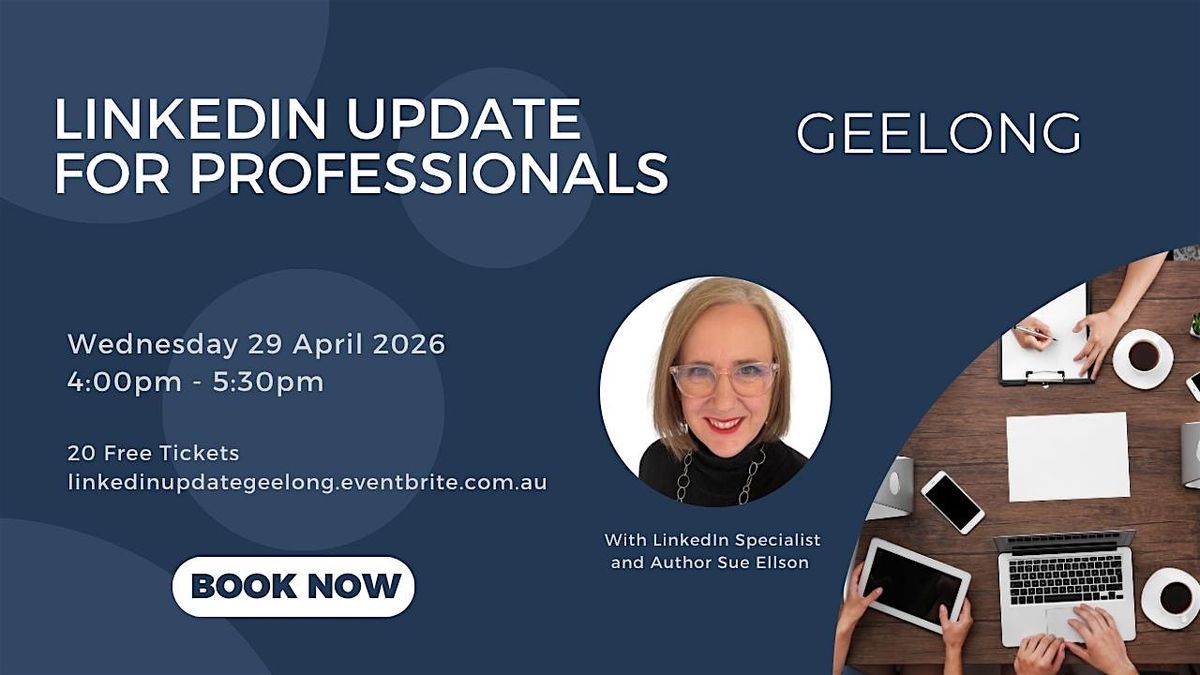 Hey Geelong professionals! Join Sue Ellson (who lives and works in Melbourne) on Wednesday 29 April 2026 from 4pm โ 5:30pm in the Nyaal Discussion Room at the Geelong Library and Heritage Centre (The Dome), 51 Little Malop Street, Geelong, Victoria 3220 for an in-person interactive session all about maximising LinkedIn.