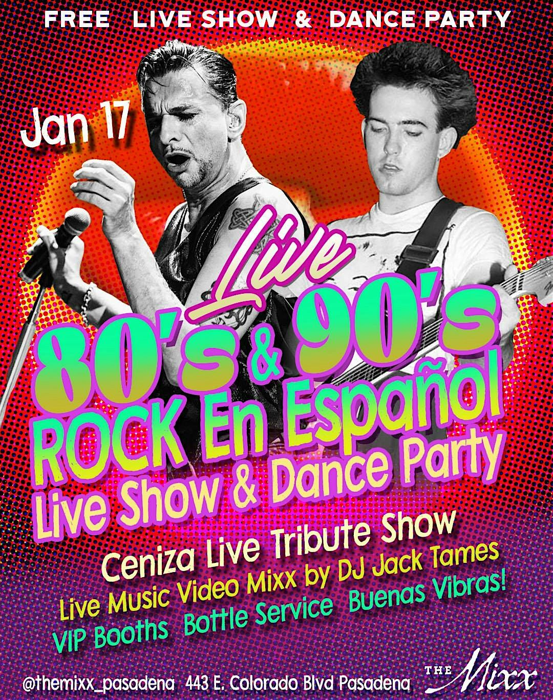 Join us for a funtastic FREE Live 80's & 90's + Rock En Español & Cumbia Show & Fiesta featuring an all new show with CENIZA performing all your favorite 80s and 90s flashbacks live. + Rock En Español Cumbia to get you moving your bom boms.