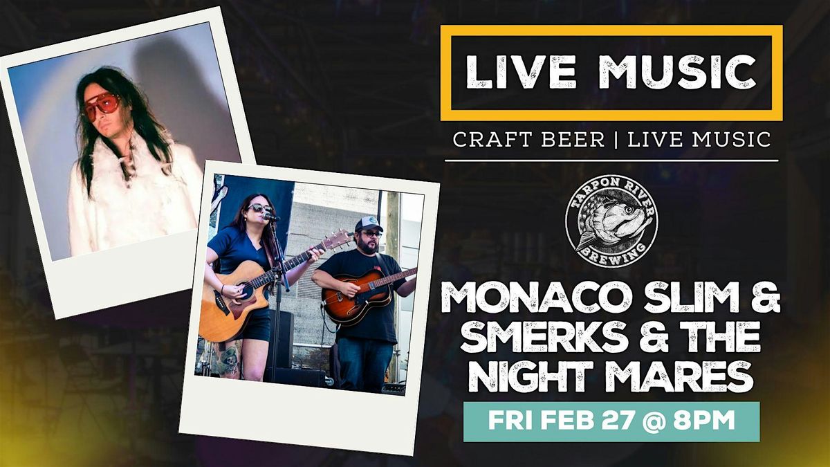 Get ready for a genre-bending night of live music as Monaco Slim and Smerks and the Night Mares take the stage at Tarpon River Brewing.