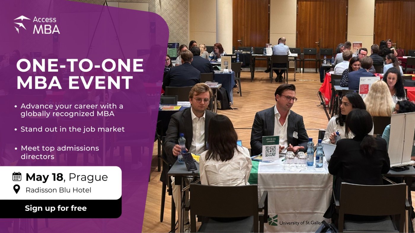 Join the Access MBA One-to-One event in Prague and meet admissions directors and alumni from leading international business schools such as ESMT Berlin, Porto Business School, Hult International Business School, Frankfurt School of Finance & Management, emlyon business school, St. John’s University, TU Wien, and Webster University Vienna, among others.