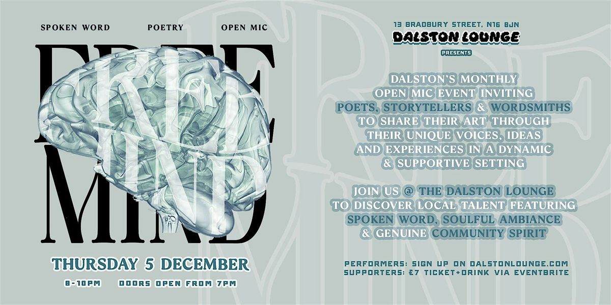 Whether you're a fan of poetry, spoken word, or simply looking for a unique and engaging evening out, Free Mind is a must-see event. It's an opportunity to connect with like-minded individuals, hear diverse perspectives, and be inspired by the power of words in our intimate setting. All level of poets welcome.