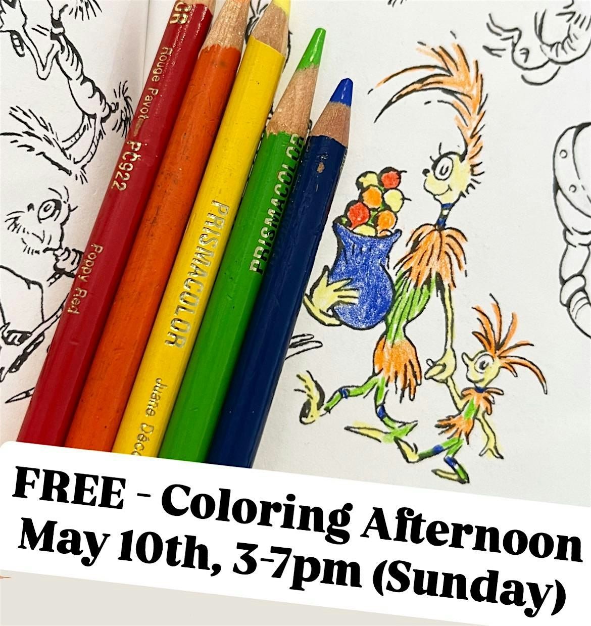 Free-to-attend community coloring time. We have plenty of coloring books, markers, pencils, and crayons for you to color to help you relax. Meet your neighbors and make some new friends, too!