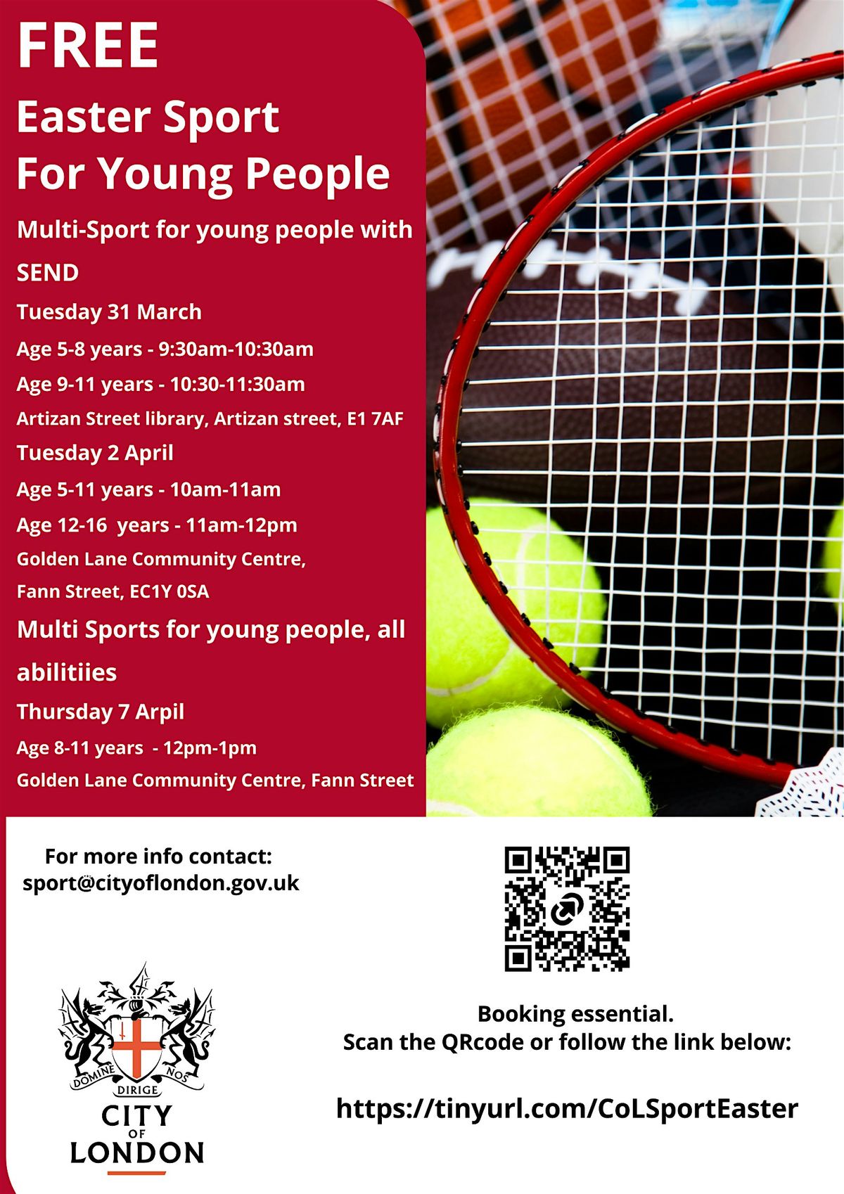 Join us at the Golden Lane Community Centre for a fun and active day! This is a great chance for kids aged 8 to 11 to try out different sports and make new friends . No experience needed—just bring your energy and enthusiasm!