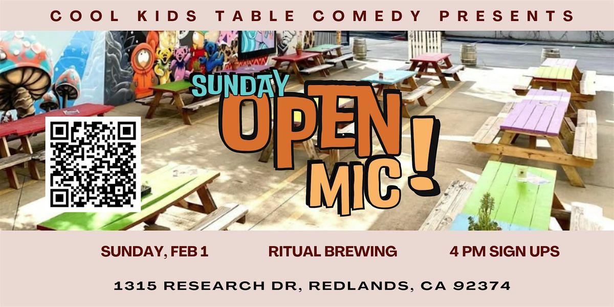 Come join us for an early evening of laughs, music, poetry, and more at Ritual Brewing Co.! Our open mic event welcomes all performers to showcase their talents in a fun and supportive environment.