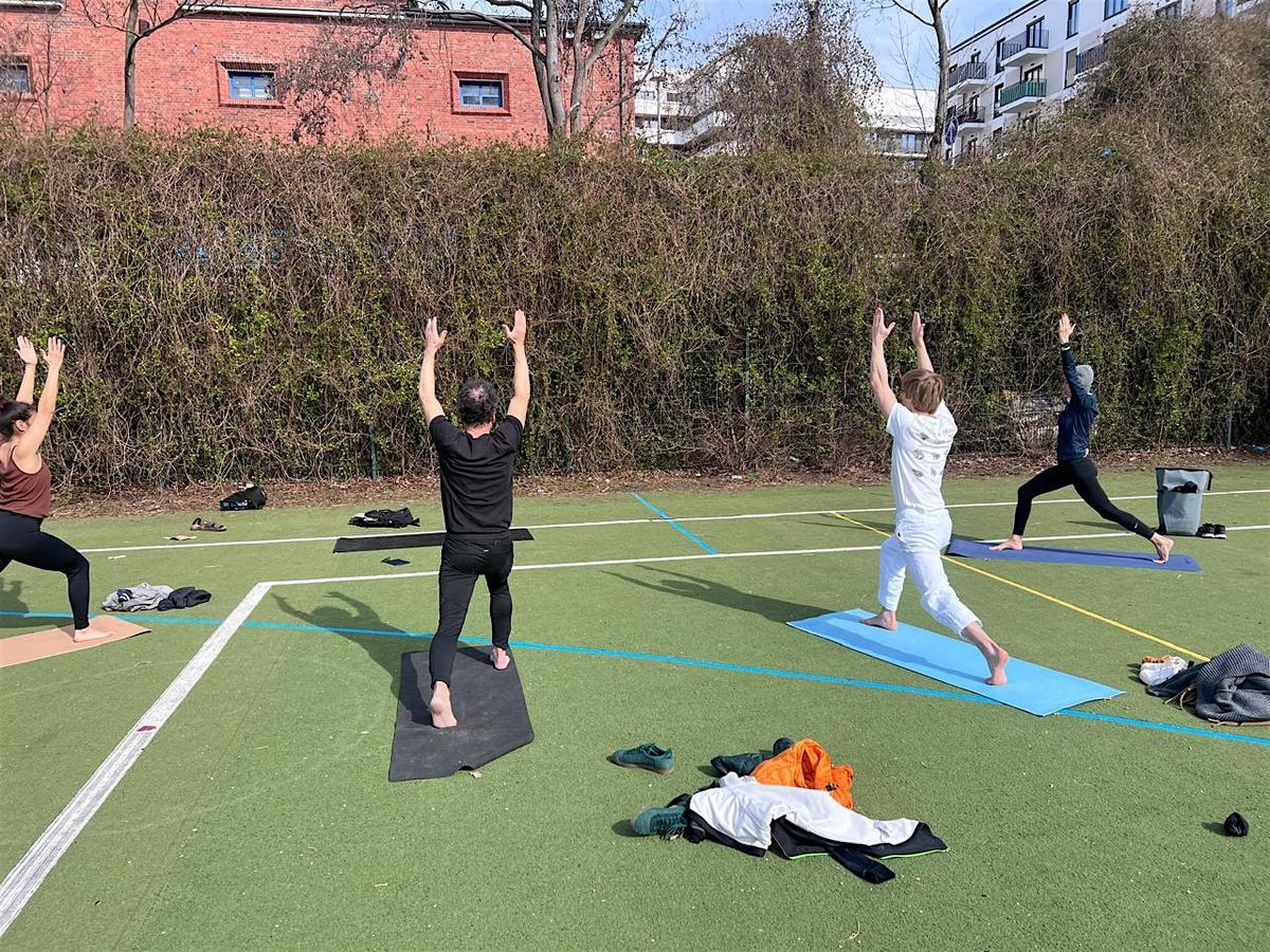 Komm am Samstagmorgen zu unserer KOSTENLOSEN Yoga-Session im Freien in der Nähe des Fußballplatzes in der Lauterstraße.