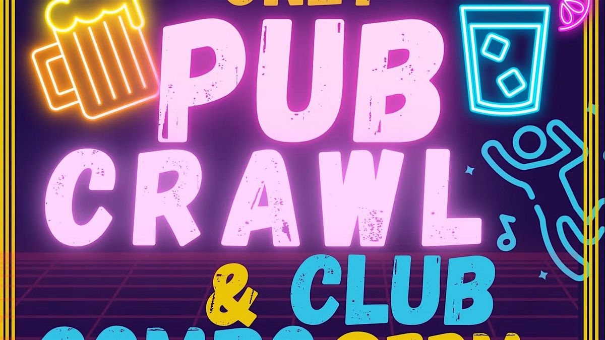 What's the night look like? Pub crawl passports. Team challenges across four venues. A prize for the winning team. And a proper club night to finish — dancing until they turn the lights on and kick you out.