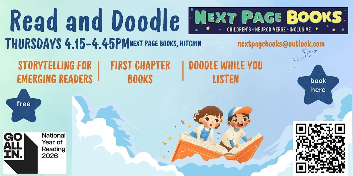 Come join us in person for a fun and relaxed session where budding readers can dive into longer stories. It's the perfect chance for kids around 6 years and up to explore first chapter books and express themselves through drawing. Great for those who need something to do while listening. All welcome (age recommendation is approx). Please let us know if you/your child has any accessibility requirements. Parents/carers must accompany child/ren, can listen and doodle, or browse and buy from the shop!