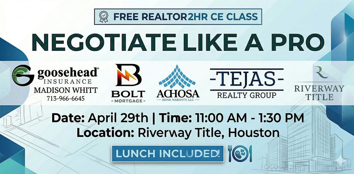 Sharpen your deal-making skills with this free 2-hour session designed to help realtors negotiate like champs.About this Event