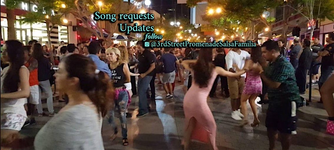 - Sundays, 6 PM, at 3rd Street Promenade. LISTEN for the salsa music! We will typically be by the Apple Store and Cabo Cantina (No weekday events.)