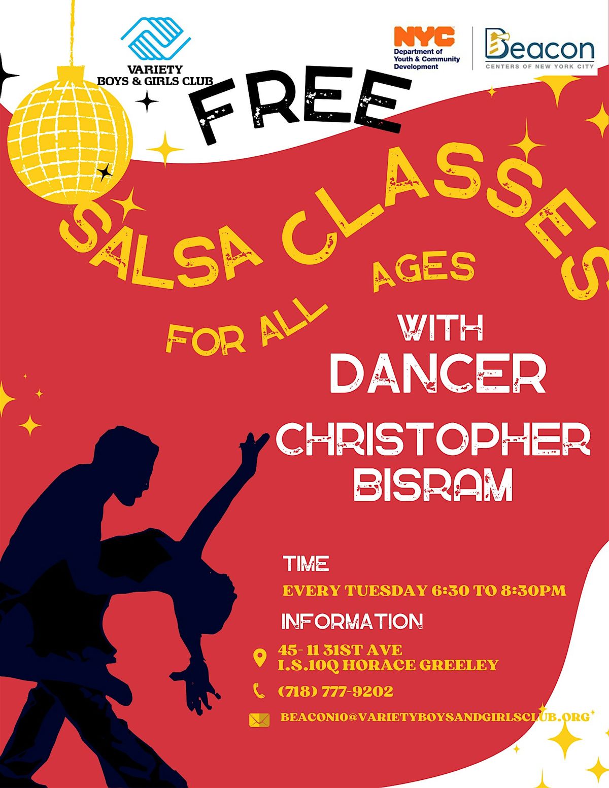- Salsa: Tuesdays, 6:30 PM – 8:30 PM