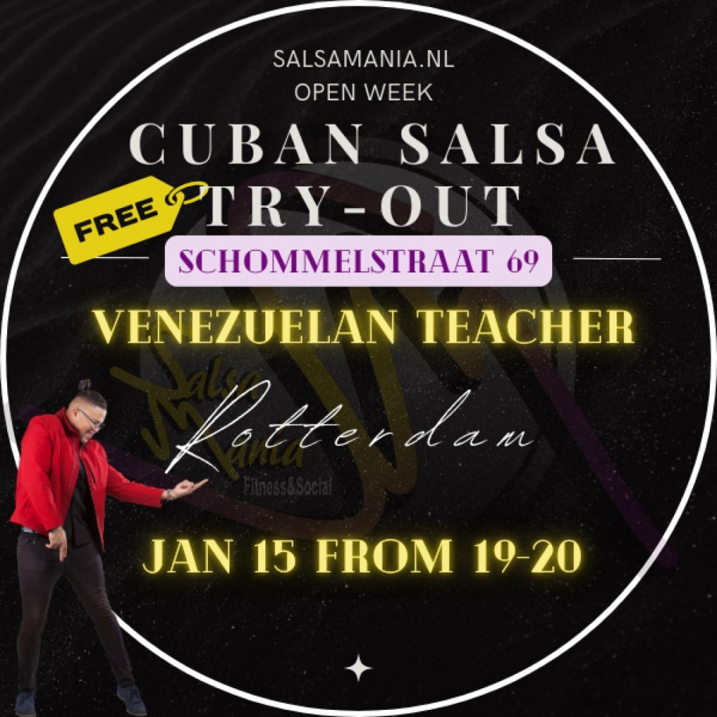 I’m Nelson John, Venezuelan instructor a with 20+ years of experience, and I’m excited to welcome you to this special week of free classes across four locations in The Hague and Rotterdam.