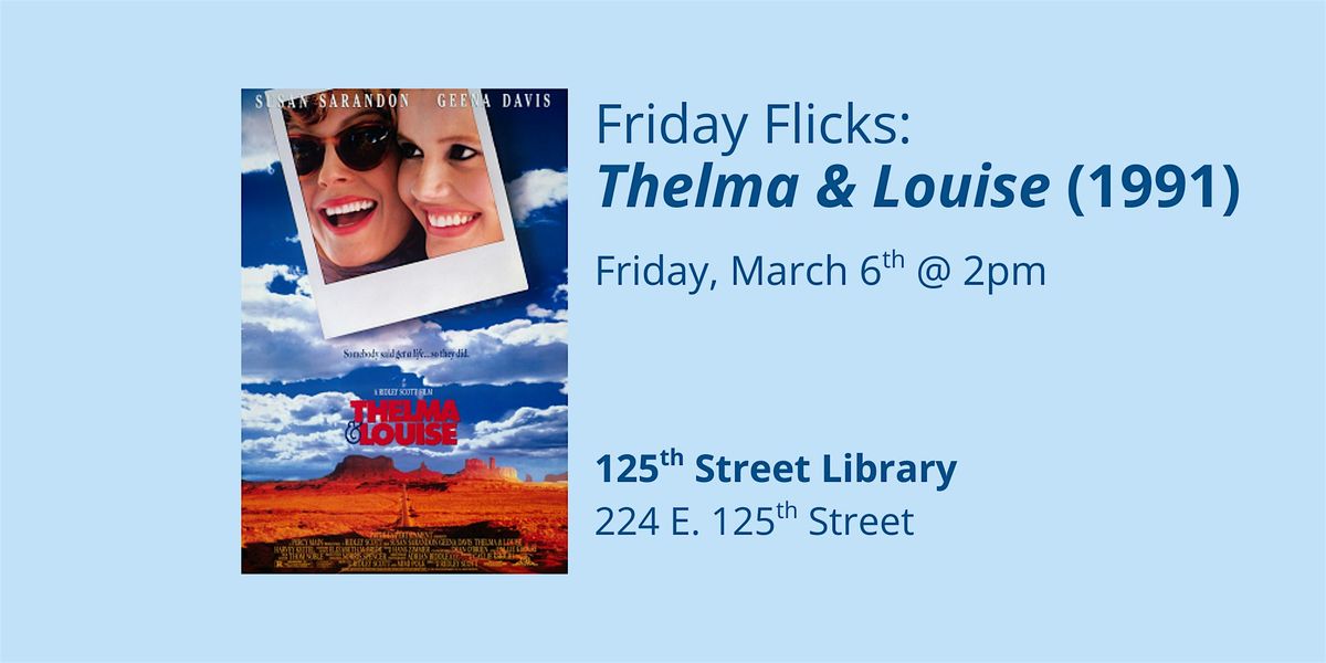 Come join us at the 125th Street library for a movie on select Fridays!This week's pick: Thelma & Louise (1991)