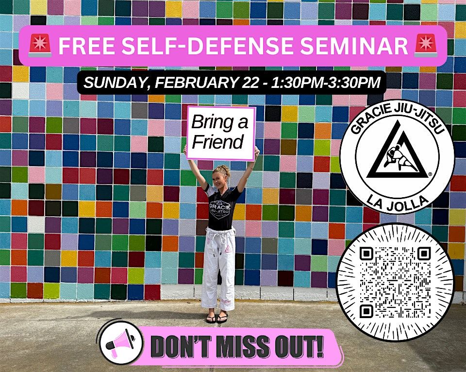 FREE Self-Defense Seminar! March 29 | 1:30–3:30pm. Ages 13+. No experience required. Bring a friend & wear athletic gear!
