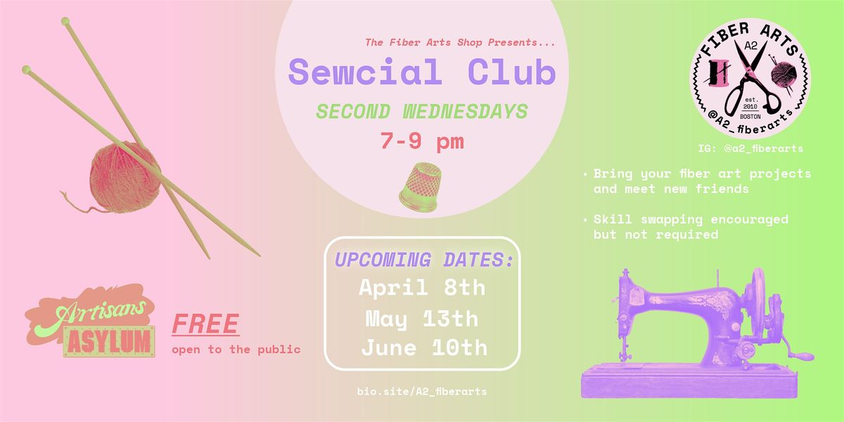 The Fiber Arts Shop presents "Sewcial Club" a new way to work on your fiber art projects and meet new friends!