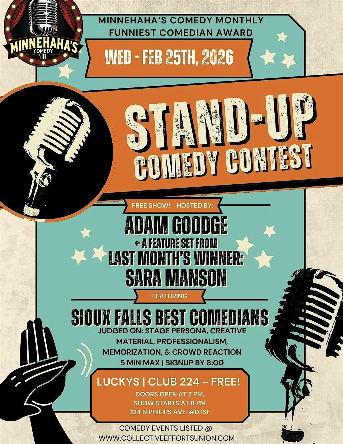 Hosted by ADAM GOODGE & featuring a set from last months winner: SARA MANSON
